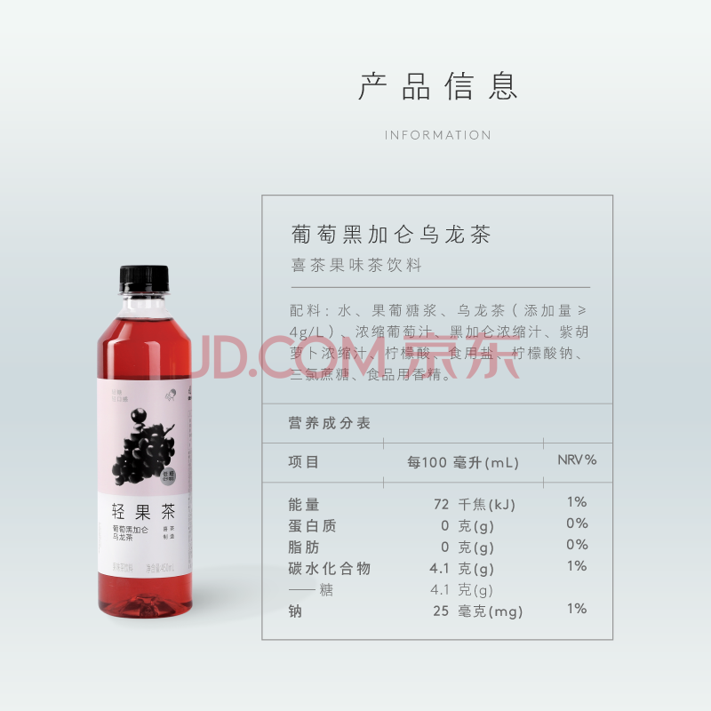商品名称:喜茶轻果茶葡萄黑加仑450ml*15瓶 低糖低卡0脂 果味茶饮料整箱