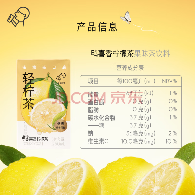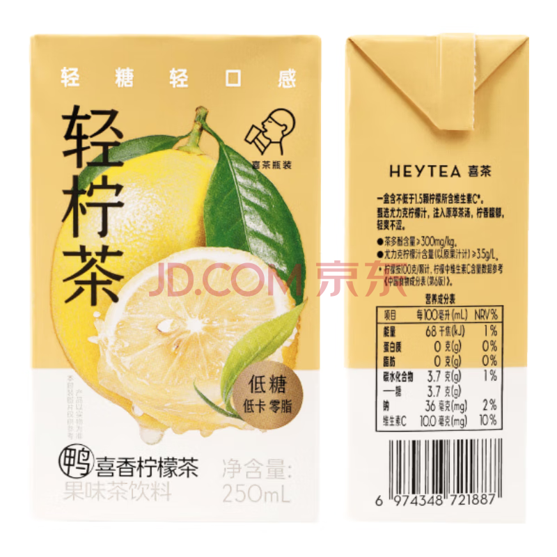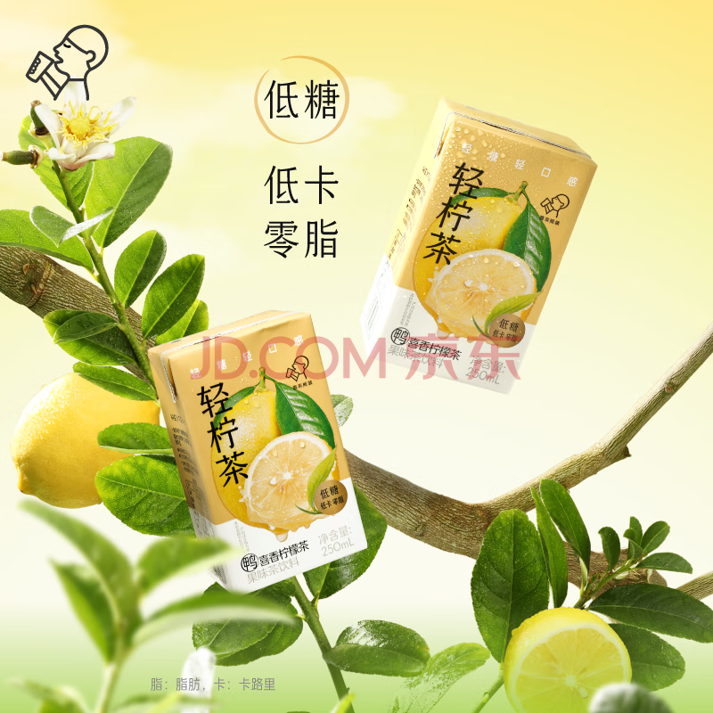 商品名称:喜茶轻柠茶鸭喜香柠檬茶250ml*24盒 低糖低卡0脂 柠檬茶饮料整箱