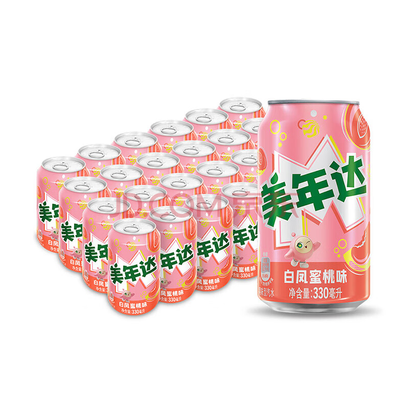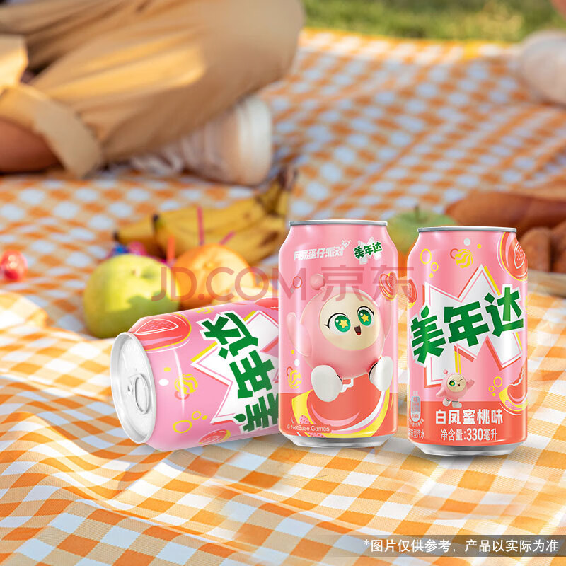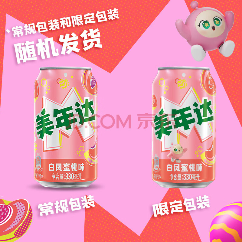 商品名称:百事可乐美年达X蛋仔派对 白凤蜜桃味汽水碳酸饮料330ml*24听新老包装随机
