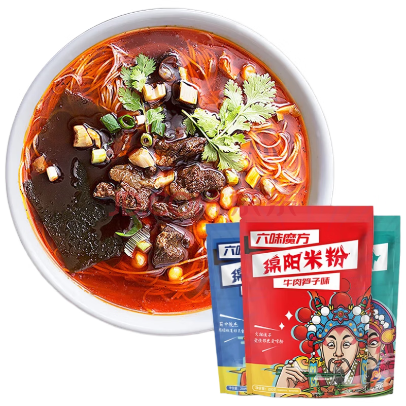 商品名称:六味魔方 绵阳米粉5袋装3牛肉2肥肠 四川特产开元方便速食粉丝细米线1250g