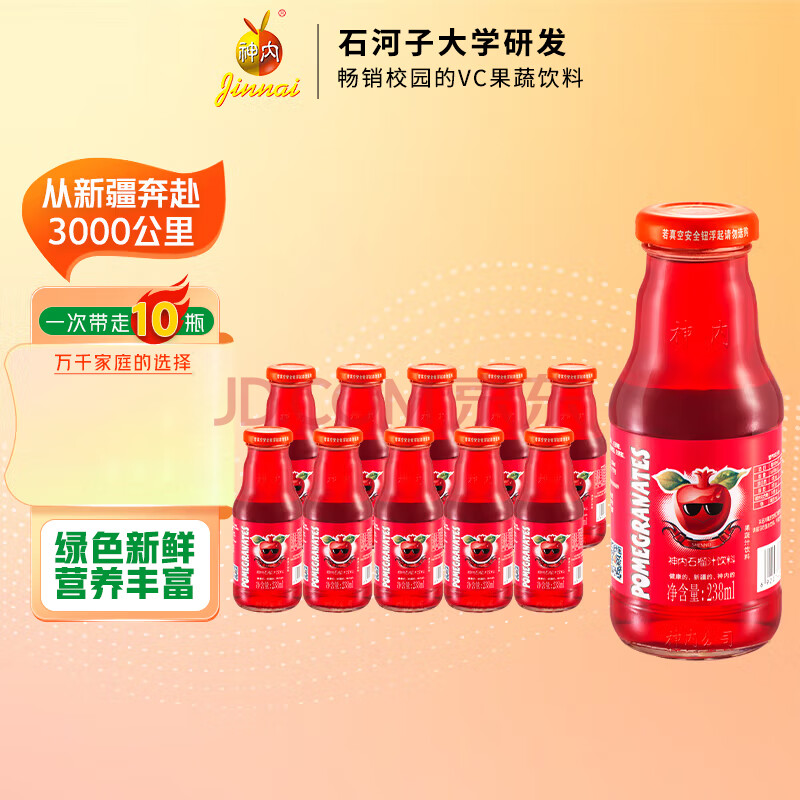 商品名称:神内(GINNAI)石榴汁238ml*10瓶 代餐果汁轻食0脂肪饮料整箱装