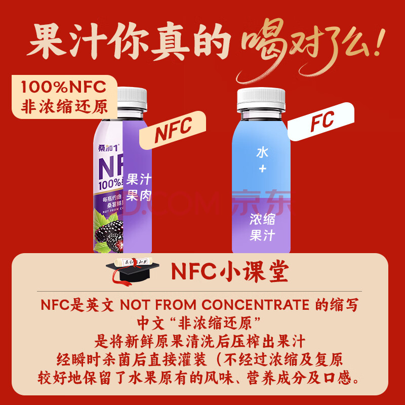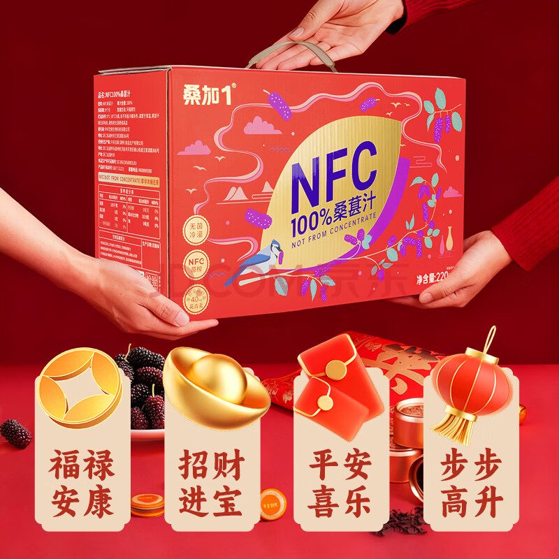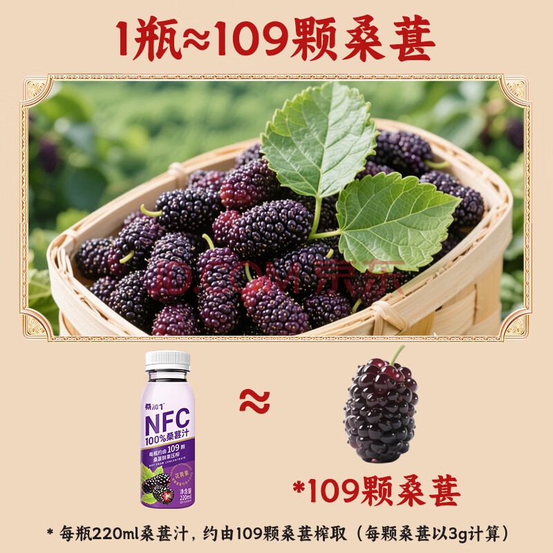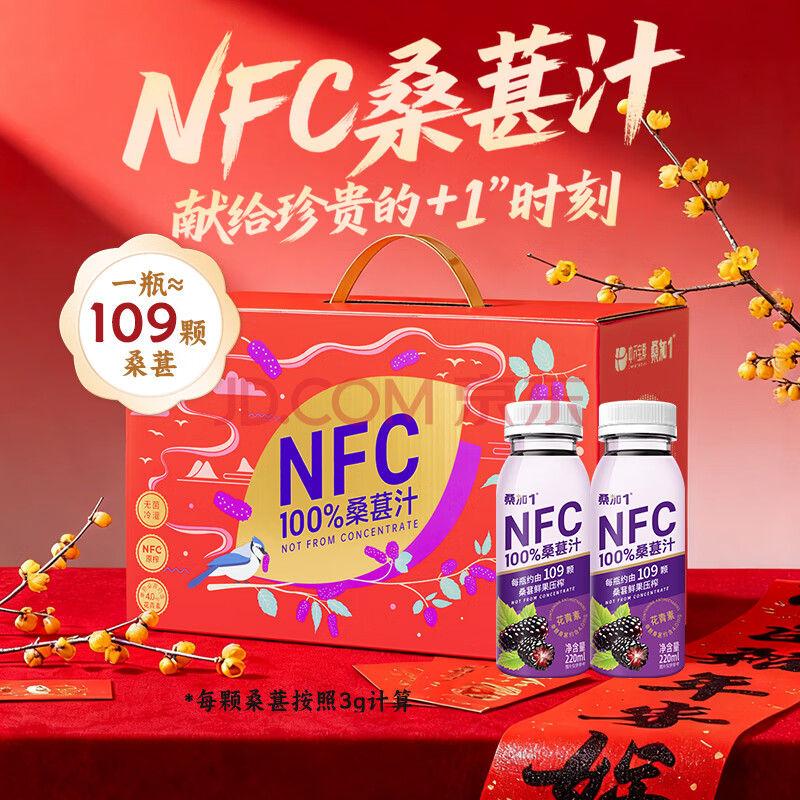 商品名称:桑加 1 100%桑葚汁NFC果汁饮料220ml*15瓶 鲜果压榨含花青素礼盒装