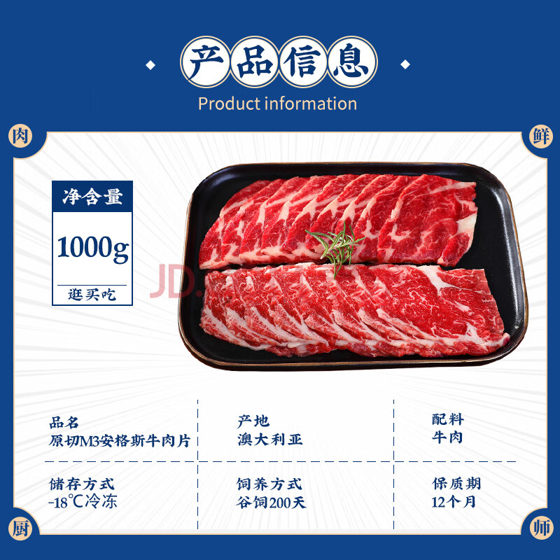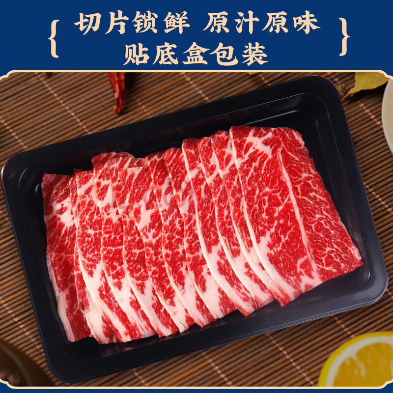 商品名称:肉鲜厨师 安格斯M3谷饲原切牛肉片 净重2斤 澳洲肥牛卷片雪花火锅烧烤食材