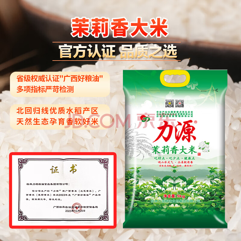 商品名称:力源茉莉香米10斤 2025京东新米长粒香大米广西好粮油 源头直发包邮