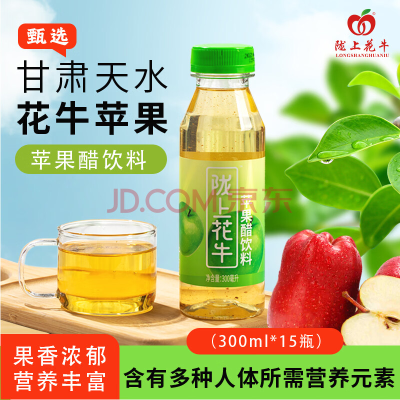 商品名称:陇上花牛0脂肪 天水花牛苹果醋果汁饮料300ml*15瓶解腻佐餐饮品