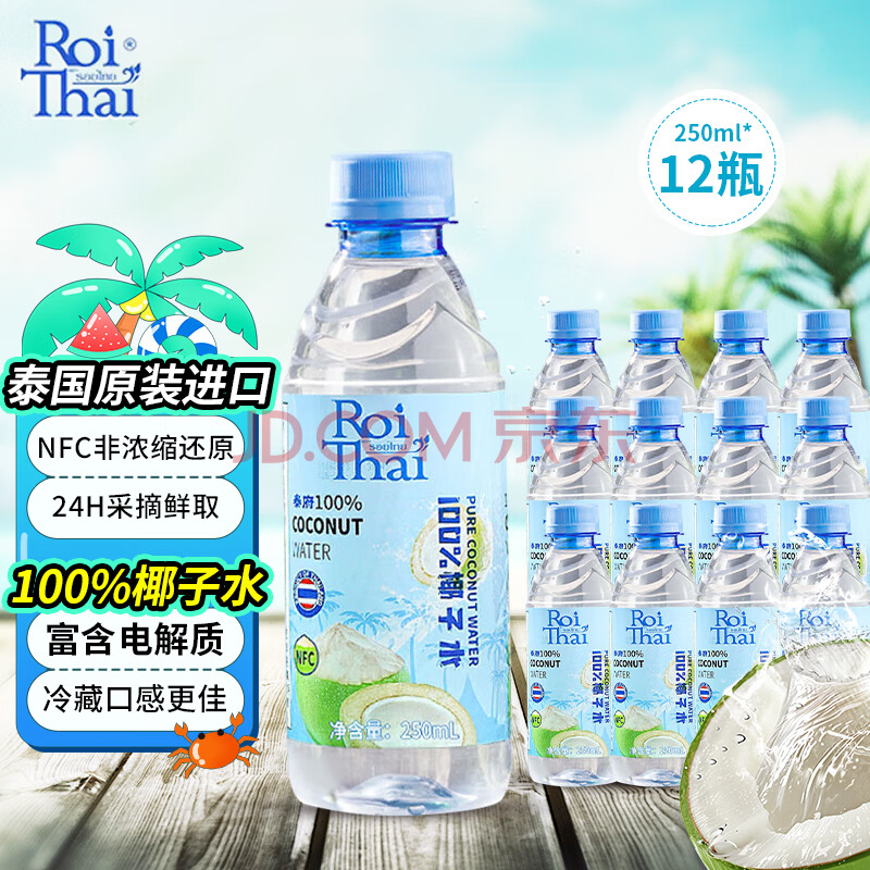 商品名称:泰府RoiThai椰子水250ml*12泰国进口NFC电解质水100%椰子水饮料