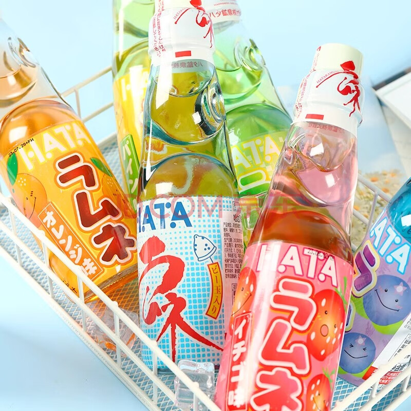 > HATA哈达网红款日式弹珠波子汽水进口玻璃瓶碳酸饮料混合口味200ml*6