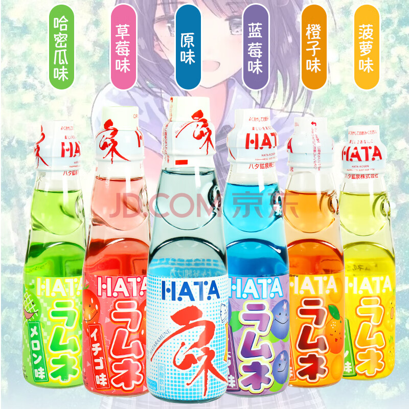 商品名称:HATA哈达网红款日式弹珠波子汽水进口玻璃瓶碳酸饮料混合口味200ml*6