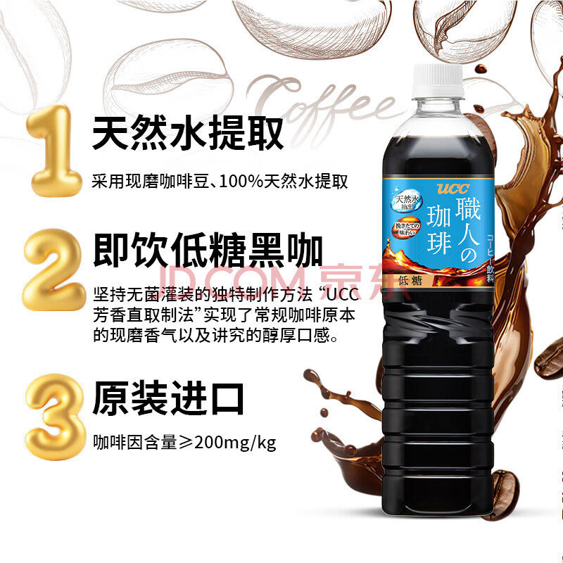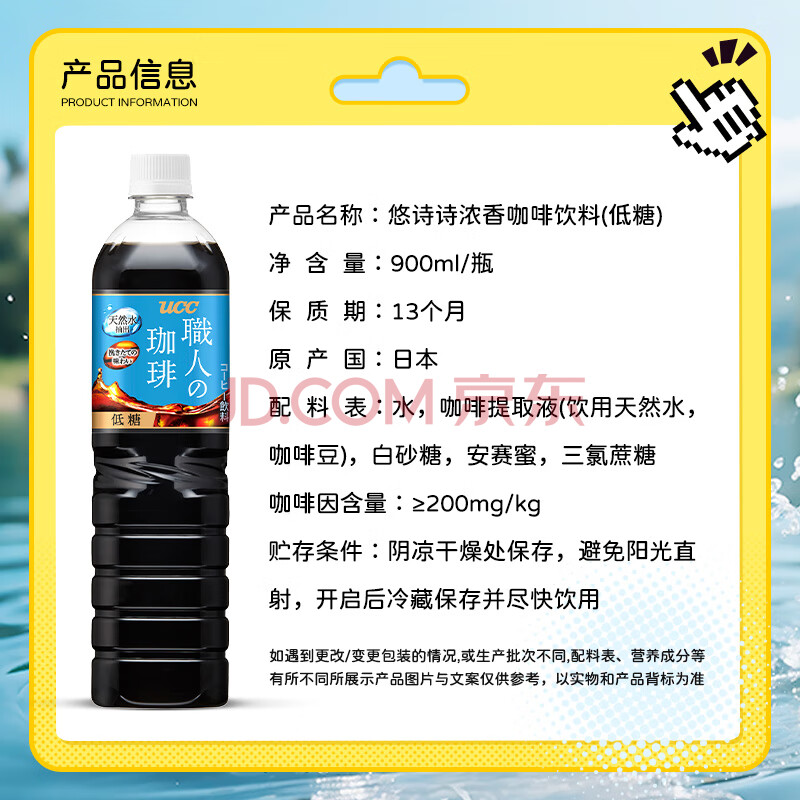 商品名称:悠诗诗(UCC)低糖即饮黑咖啡900ml*6瓶 原装进口大瓶装 咖啡饮料
