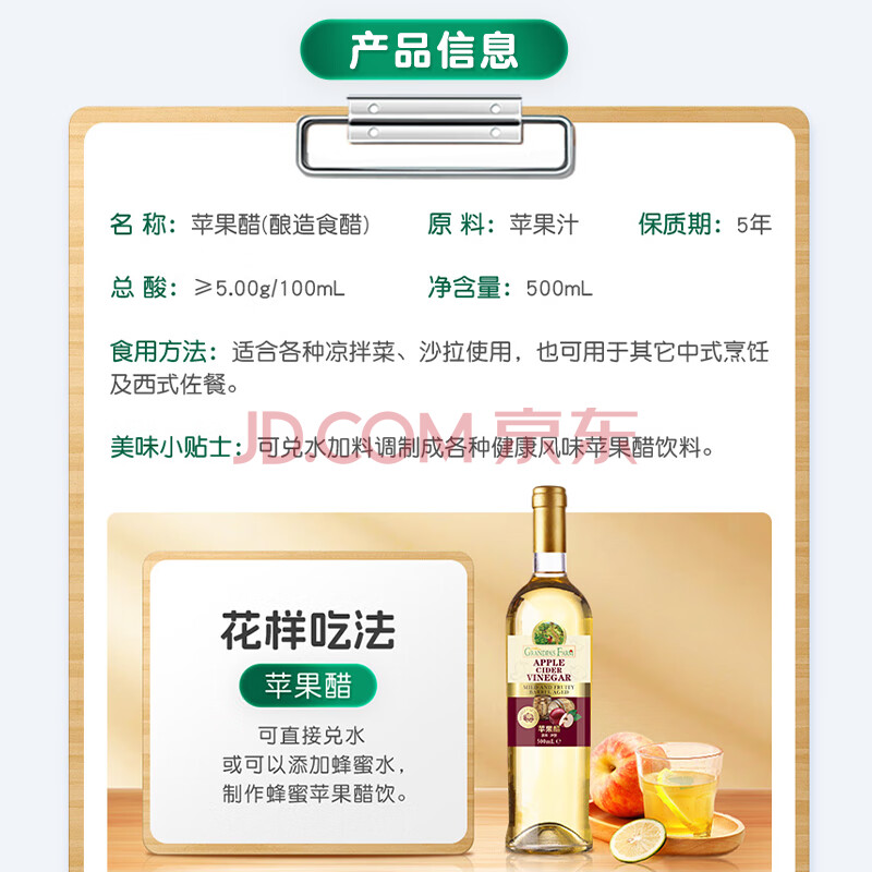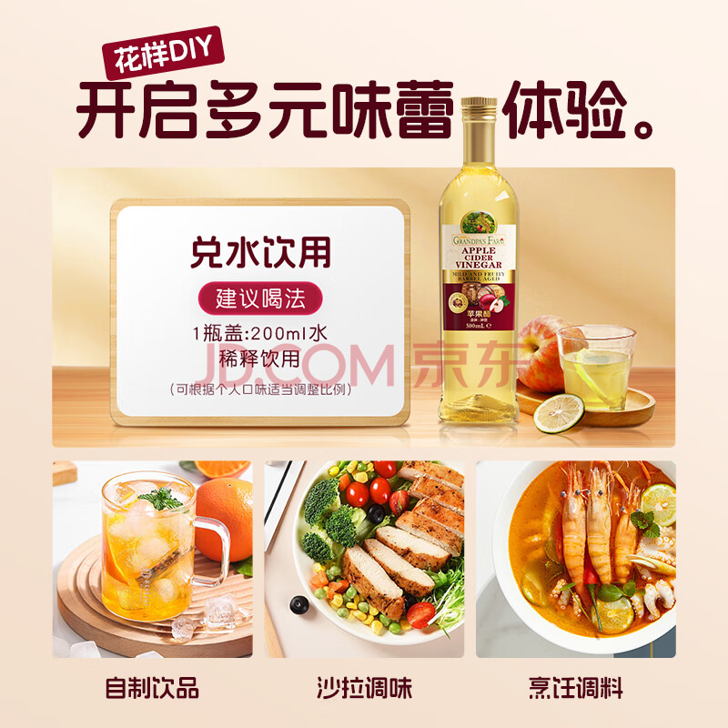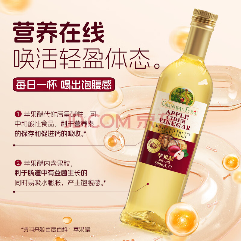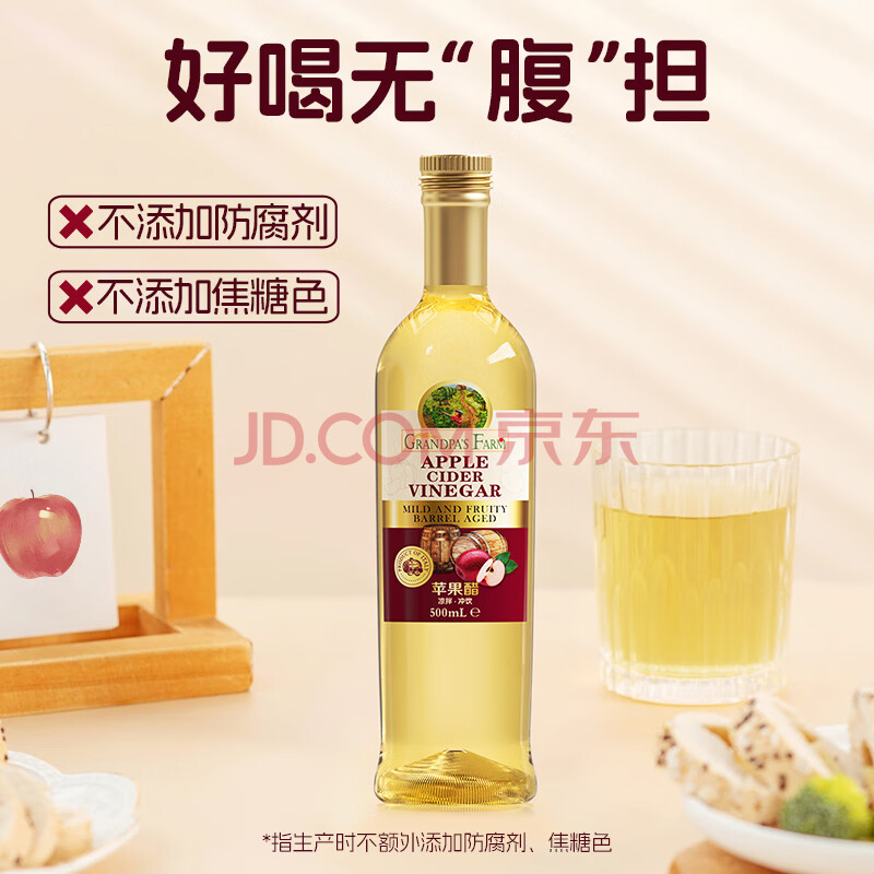 商品名称:爷爷的农场进口苹果醋原浆500ml 5度 无糖0脂0防腐 轻食醋健身饮料凉拌果醋