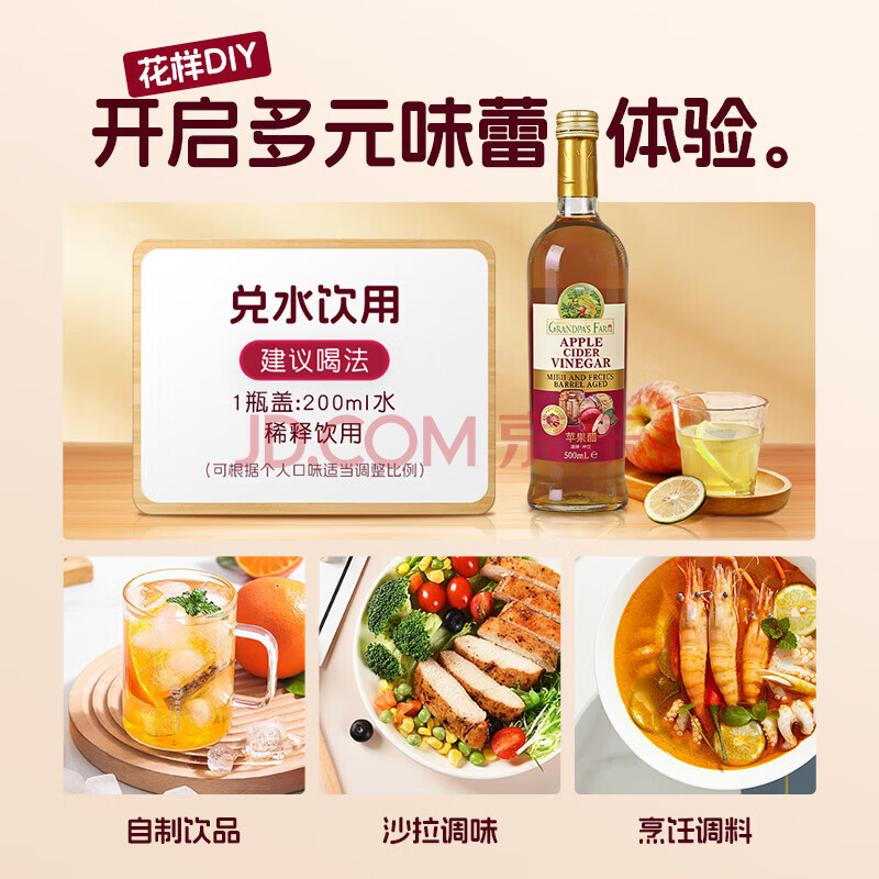 商品名称:爷爷的农场进口苹果醋原浆500ml 5度 不添糖盐0防腐 轻食醋健身饮料凉拌果醋