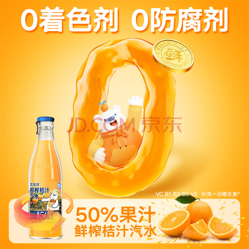 商品名称:北冰洋 鲜榨桔汁汽水 鲜榨饮料 330ml*6瓶整箱装(50%果汁含量)