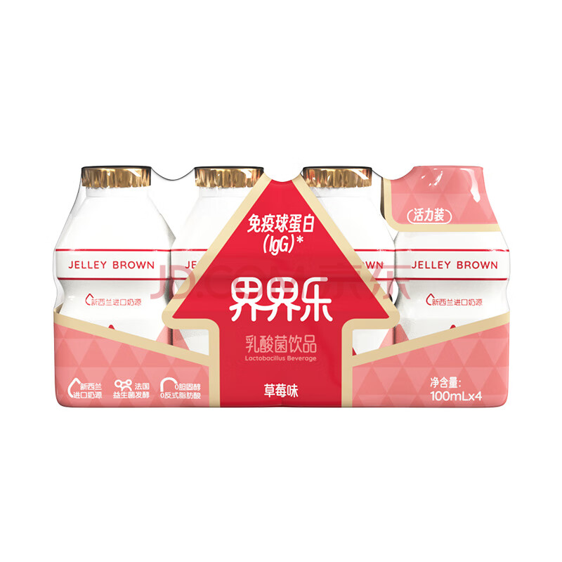 商品名称:界界乐乳酸菌饮料牛奶乳品免疫球蛋白草莓100ml*40瓶整箱活力装(无吸管)