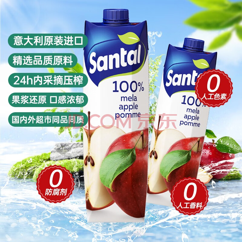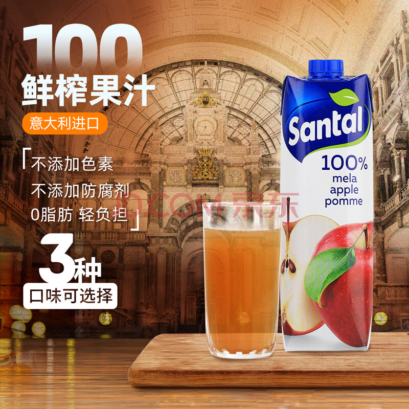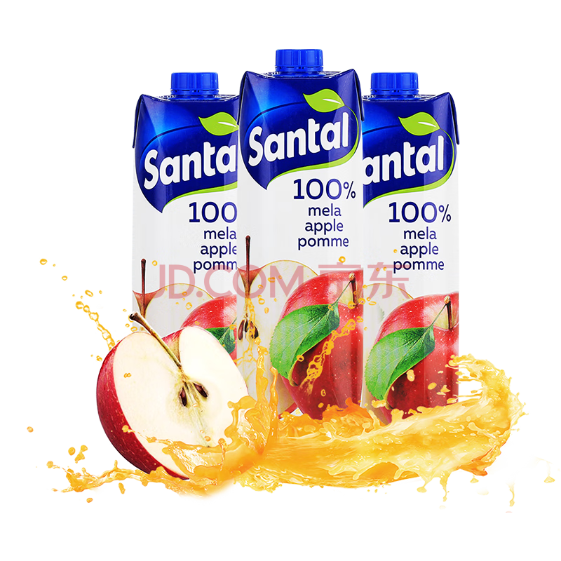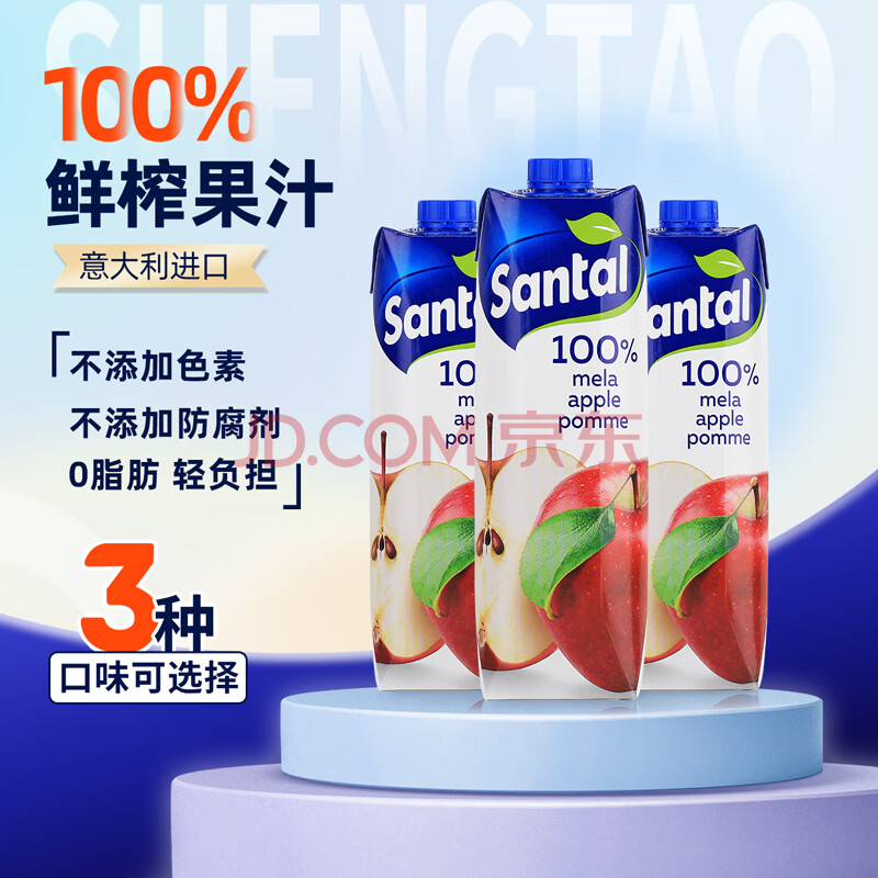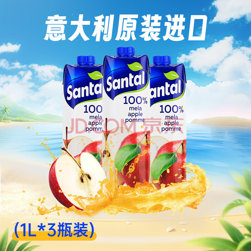 > 圣涛(SANTAL)帕玛拉特意大利100%苹果汁1L*3瓶进口纯果汁饮料果蔬汁好礼