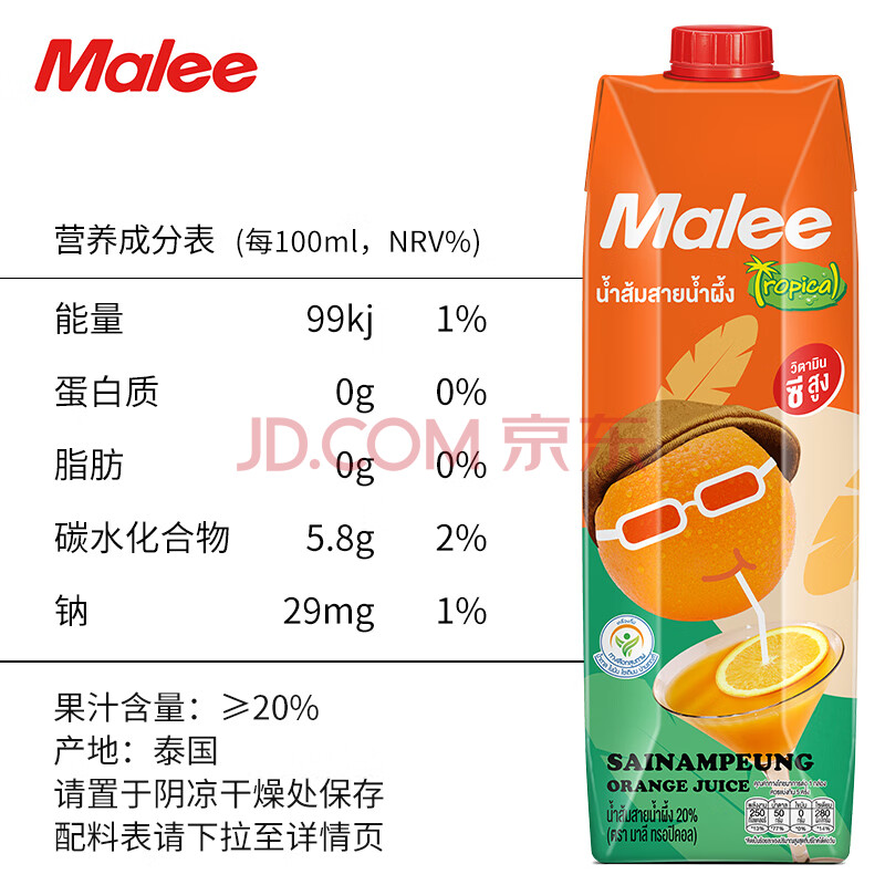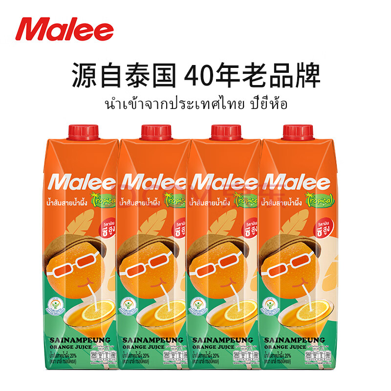 商品名称:玛丽(MALEE)泰国进口果汁饮料 塞那蓬橙汁 大瓶聚会宴席餐饮装1L*4