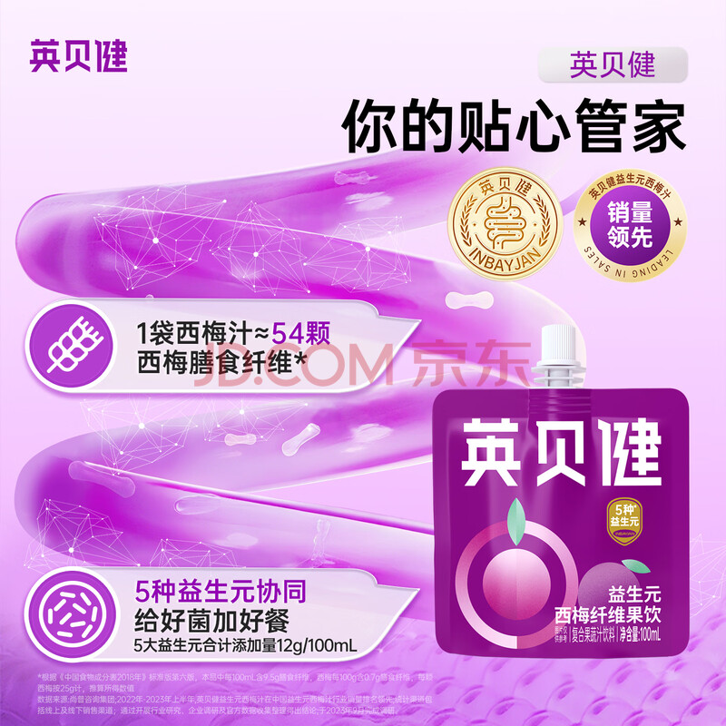 > 英贝健益生元排西梅汁果蔬汁饮料 大餐救星便携100ml*7袋