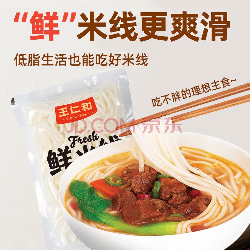 商品名称:王仁和鲜米线220克*10袋0脂健康正宗过桥米线鲜米粉代餐方便速食湿米线
