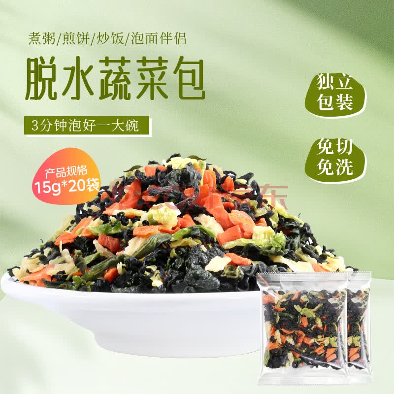 商品名称:鲜窝窝 脱水蔬菜干15g*20袋 低脂方便速食裙带菜万年青胡萝卜高丽菜干货