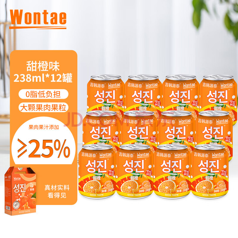 商品名称:WONTAE源泰韩式风味果汁果粒饮料橙子果肉饮料聚餐中秋礼盒装238ml*12罐