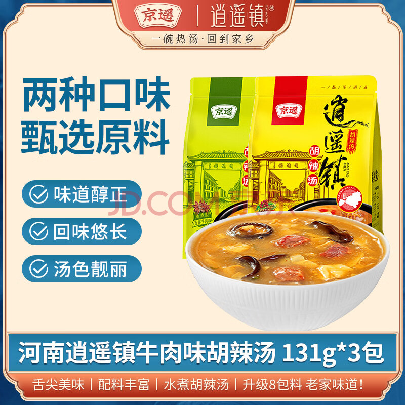 > 京遥 牛肉味胡辣汤 393g 河南逍遥镇特产家庭装方便速食 五香味
