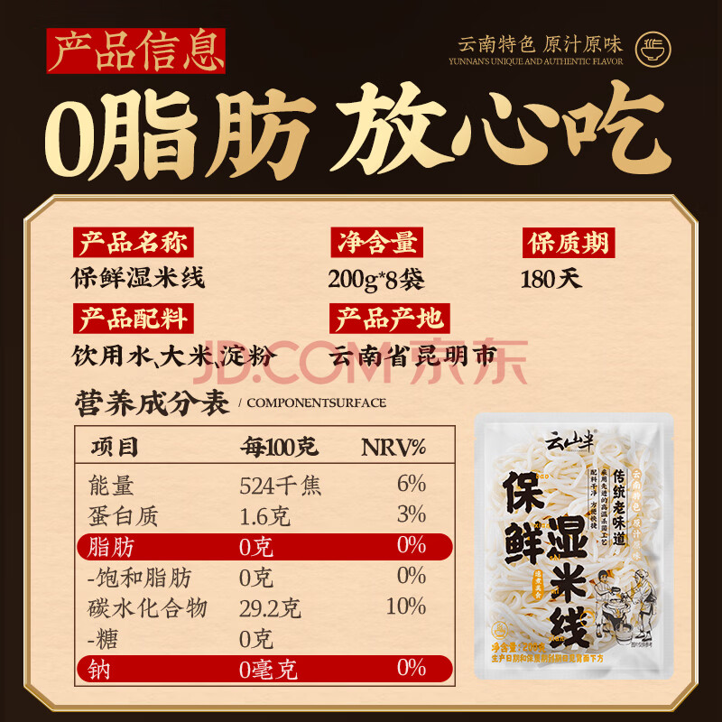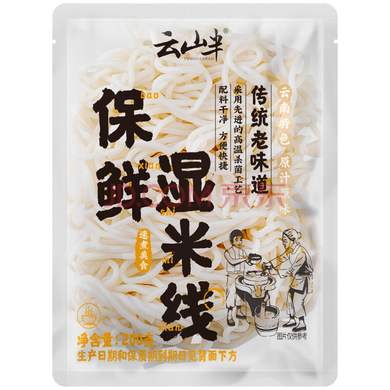 商品名称:云山半云南0脂免泡保鲜湿米线米粉200g*8袋小锅鲜过桥米线米粉方便速食