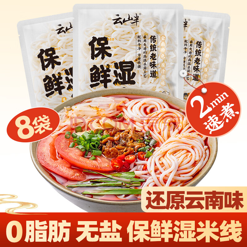 > 云山半云南0脂免泡保鲜湿米线米粉200g*8袋小锅鲜过桥米线米粉方便速食