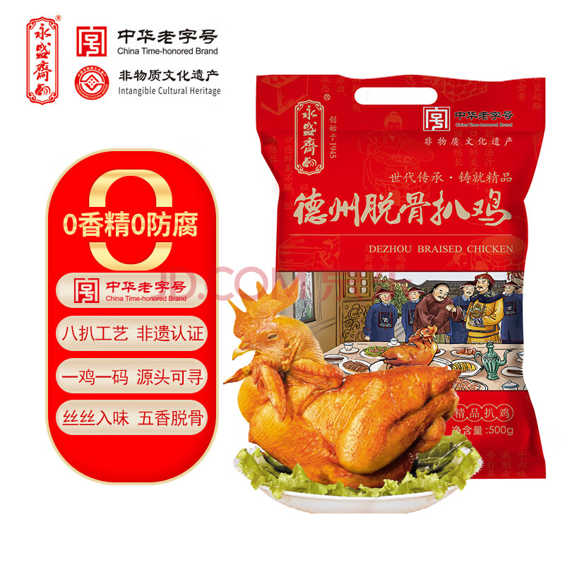 商品名称:永盛斋德州脱骨扒鸡熟食腊味五香烧鸡500g山东特产工艺升级招牌五香扒鸡