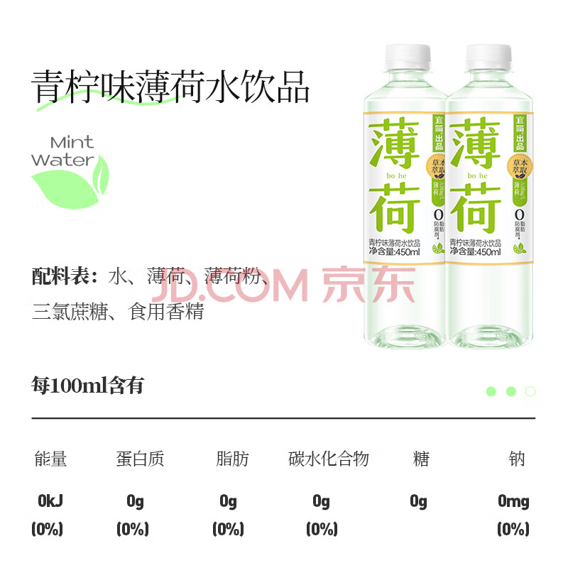 商品名称:宜简青柠味薄荷水清凉饮料0脂0防腐剂 450mL*15瓶