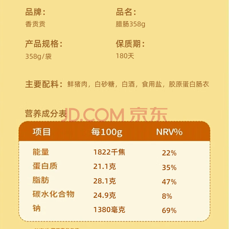 商品名称:香贡贡老字号 无添加剂广式腊肠358g 腊味香肠(7分瘦)送礼团购食品