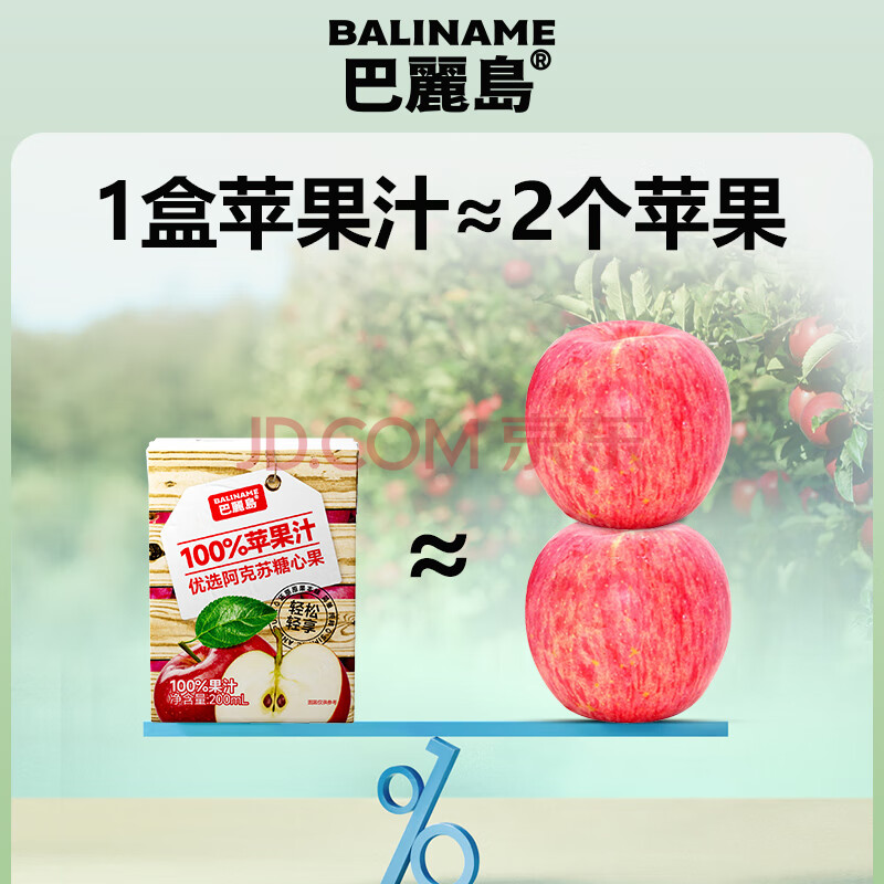 商品名称:巴麗岛100%苹果汁200ml*12盒 无添加纯果汁维生素c饮料