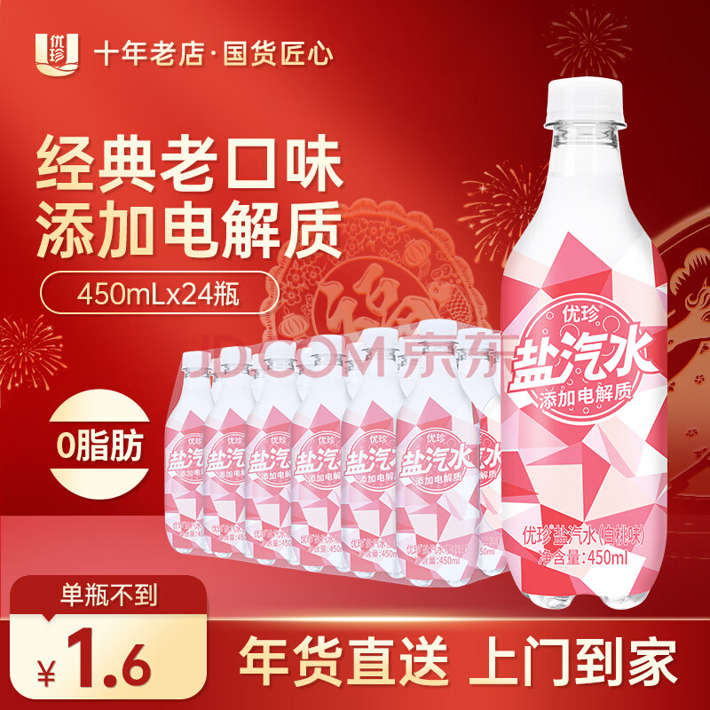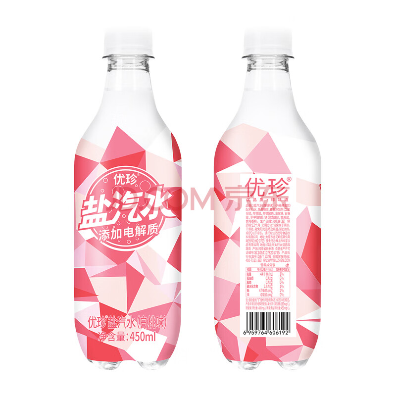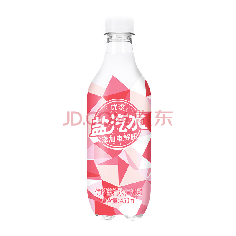 商品名称:优珍 白桃味盐汽水 碳酸饮料 含气带盐清爽解渴 450ml*24瓶 塑膜量版