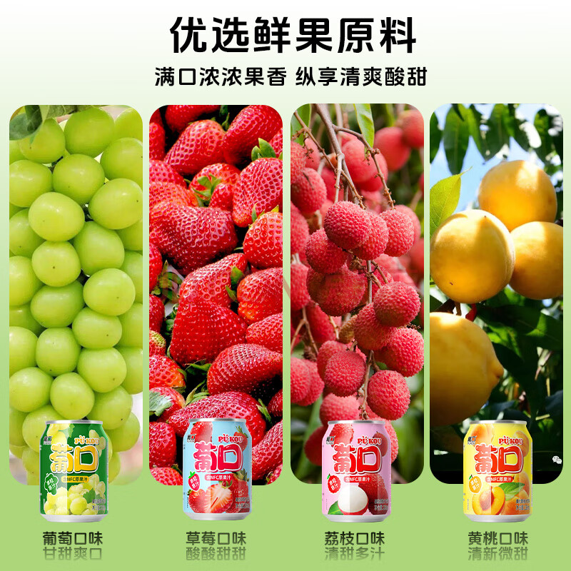 > 葡口含NFC原果汁果肉饮料葡萄黄桃荔枝草莓混合0添加小瓶238ml*10罐