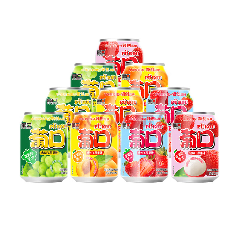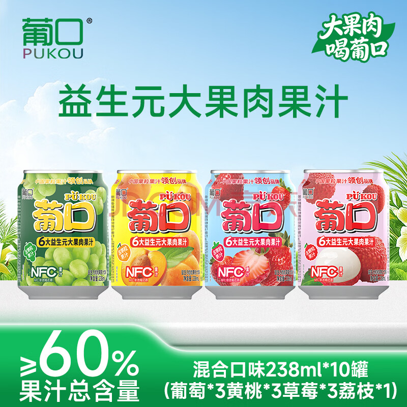 葡口含NFC原果汁果肉饮料葡萄黄桃荔枝草莓混合0添加小瓶238ml*10罐