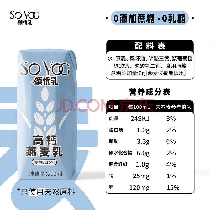 商品名称:颂优乳【赵露思代言】高钙燕麦乳咖啡伴侣早餐乳植物蛋白饮料200ml*10盒