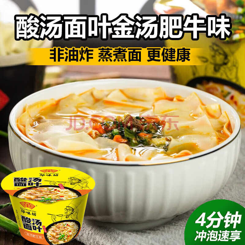 商品名称:HUAWEIFANG华味坊网红方便速食非油炸方便面金汤肥牛108g*12桶新老包装送礼