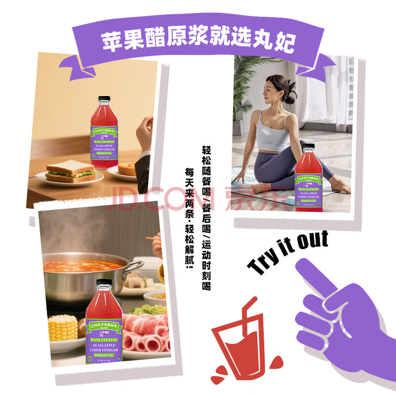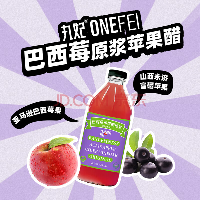 商品名称:丸妃巴西莓苹果醋原浆果醋饮料花青素0添加剂富硒自然发酵饮品473ml
