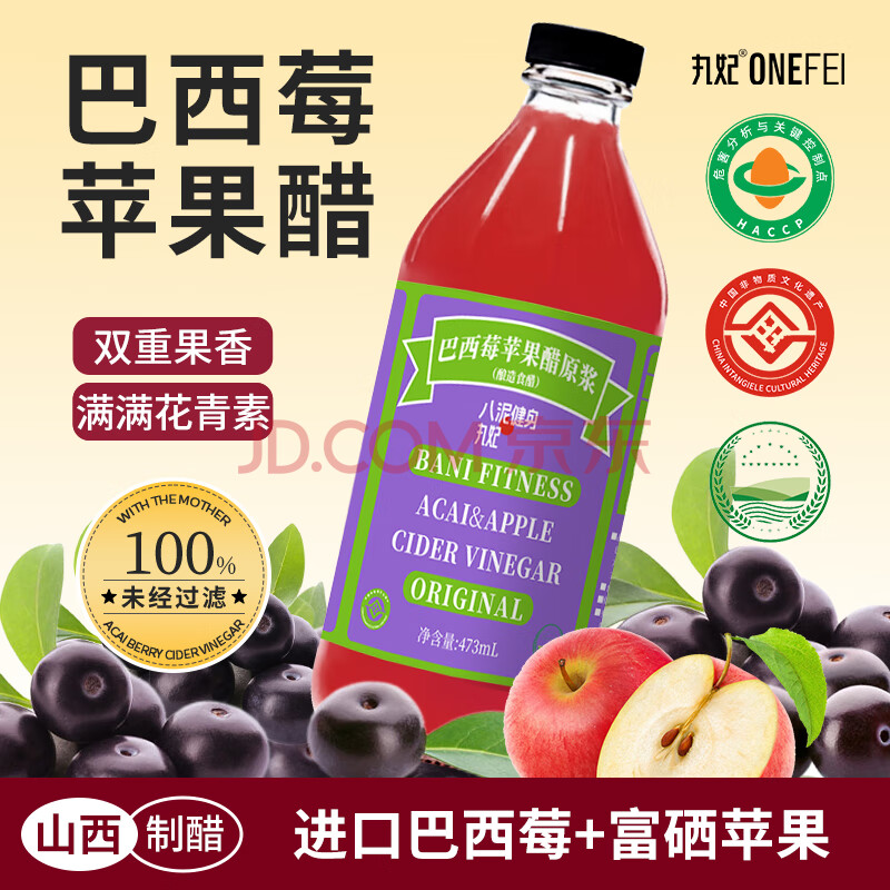丸妃巴西莓苹果醋原浆果醋饮料花青素0添加剂富硒自然发酵饮品473ml
