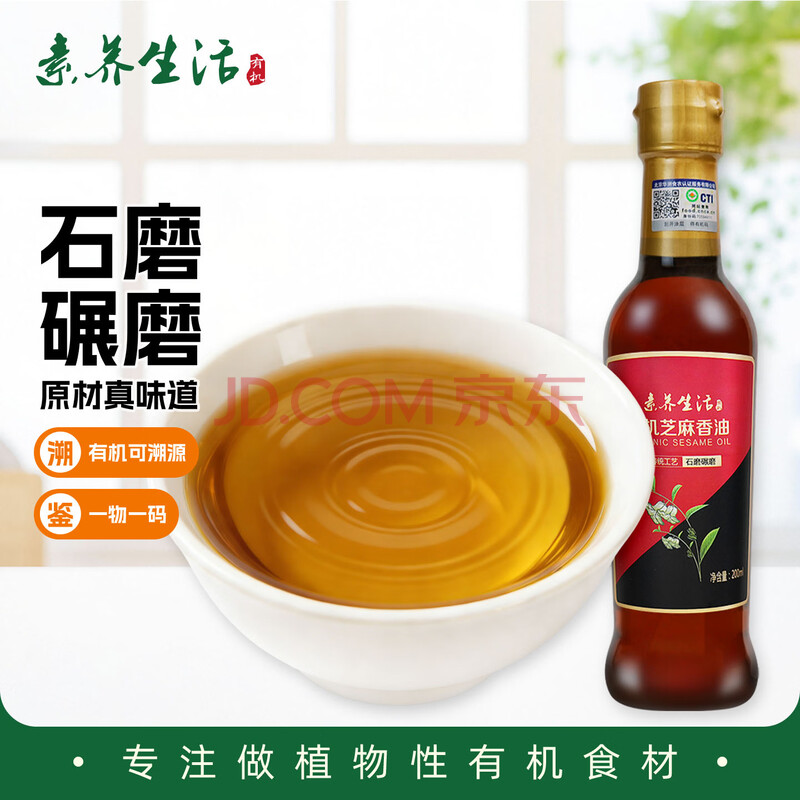 商品名称:素养生活 有机芝麻香油200ml 石磨研磨 凉拌调味烹饪火锅 物理压榨