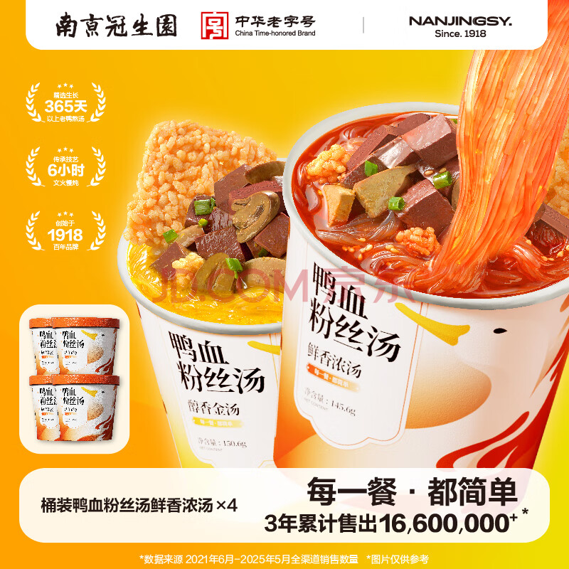 商品名称:园【免煮冲泡】南京鸭血粉丝汤地道方便速食轻享原味145.6g*4桶