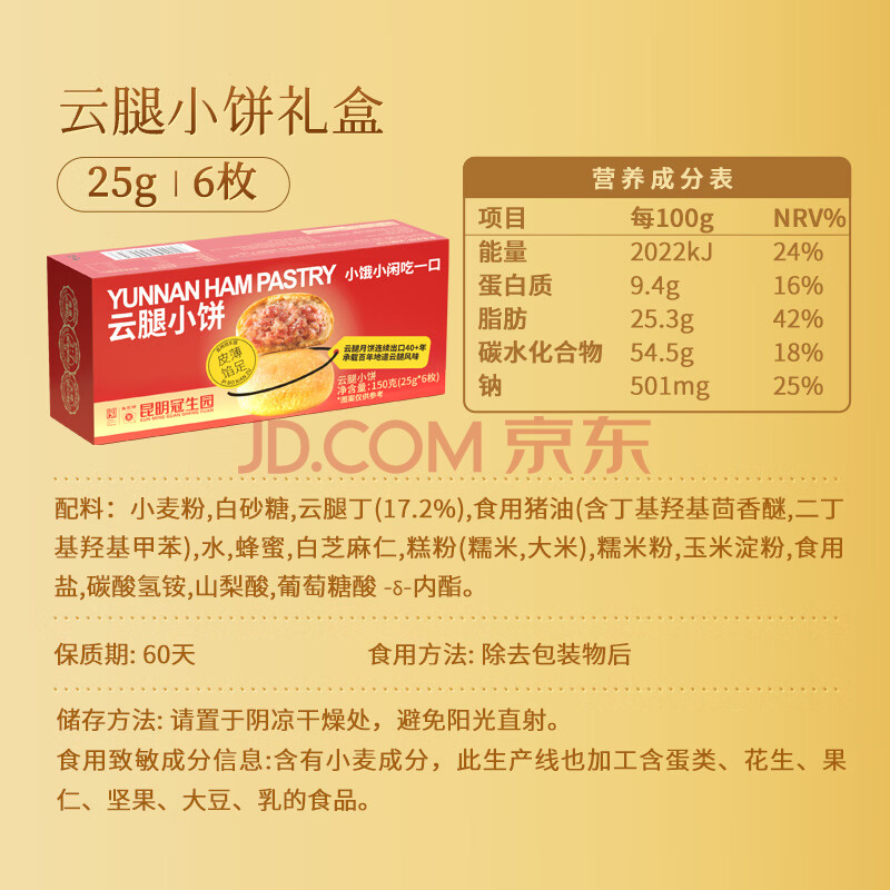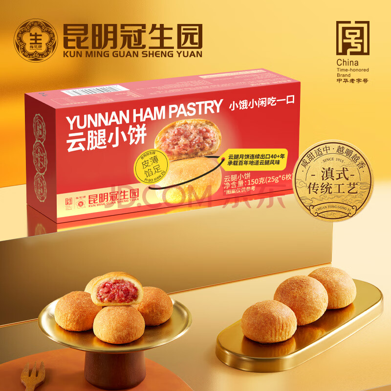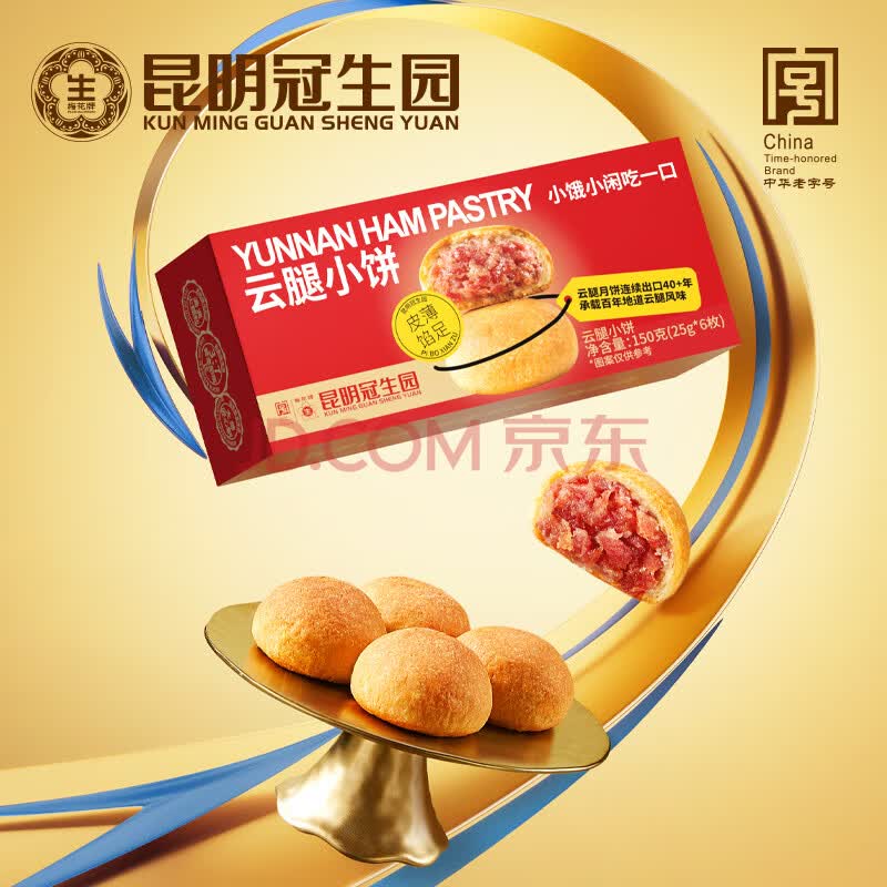商品名称:昆冠冠生园云腿小饼礼盒云南滇式酥皮迷你火腿月饼早餐零食中秋月饼