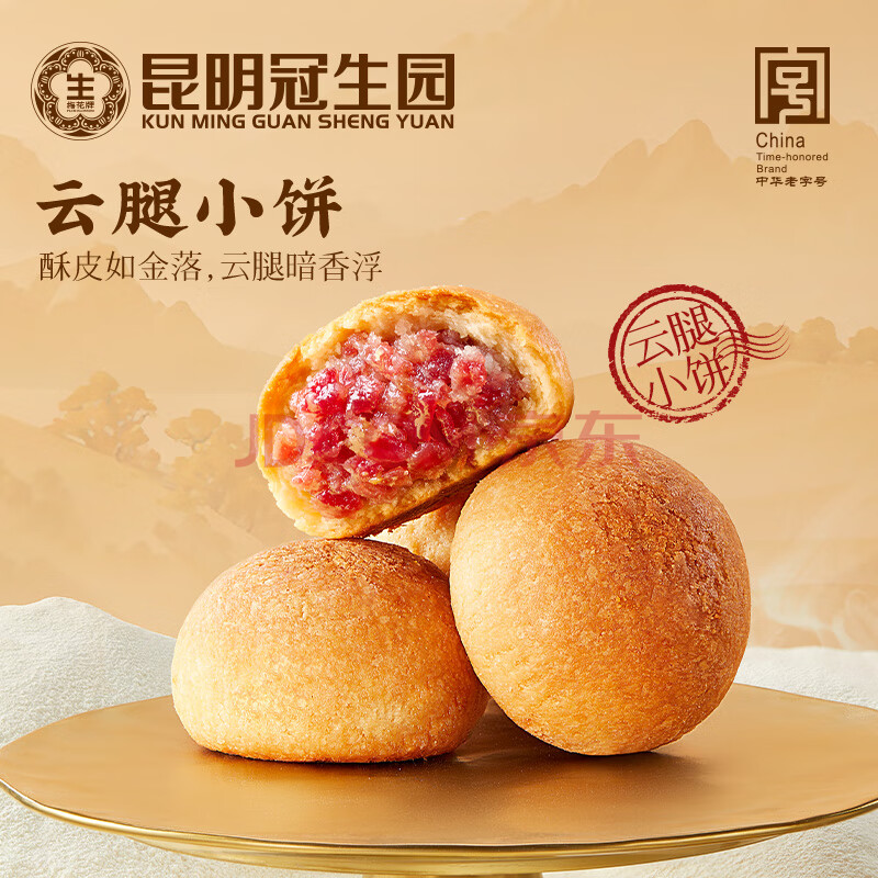 > 昆冠冠生园云腿小饼礼盒云南滇式酥皮迷你火腿月饼早餐零食中秋月饼