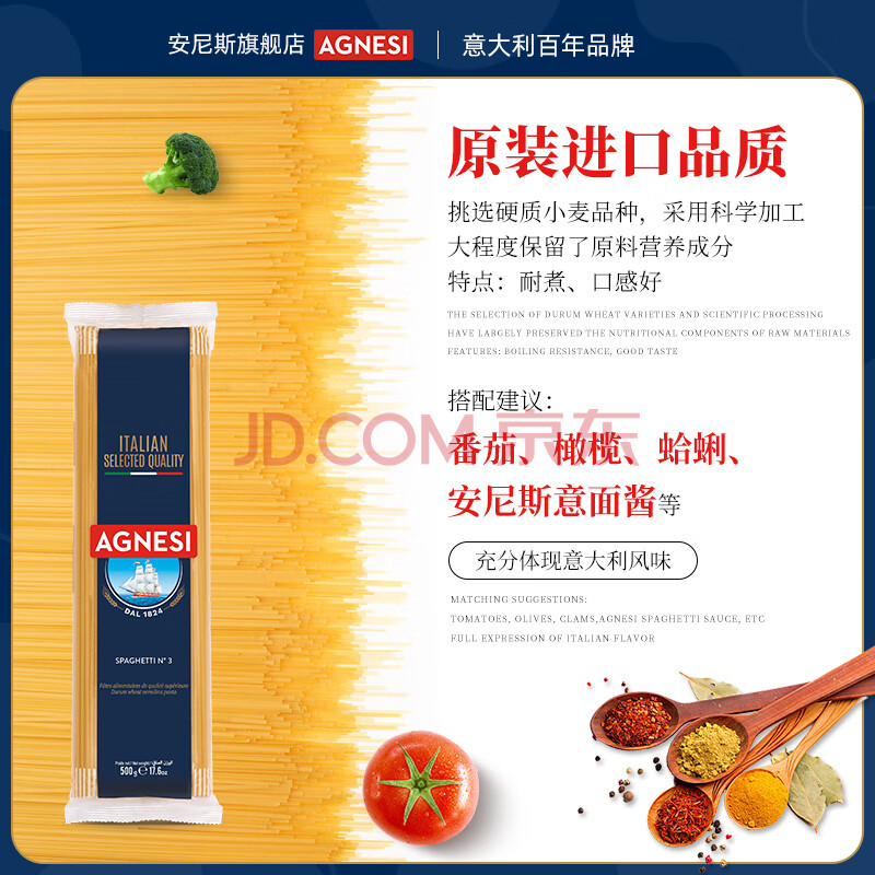 商品名称:安尼斯直条形传统意面500g意大利原装进口低脂高蛋白儿童意面方便速食