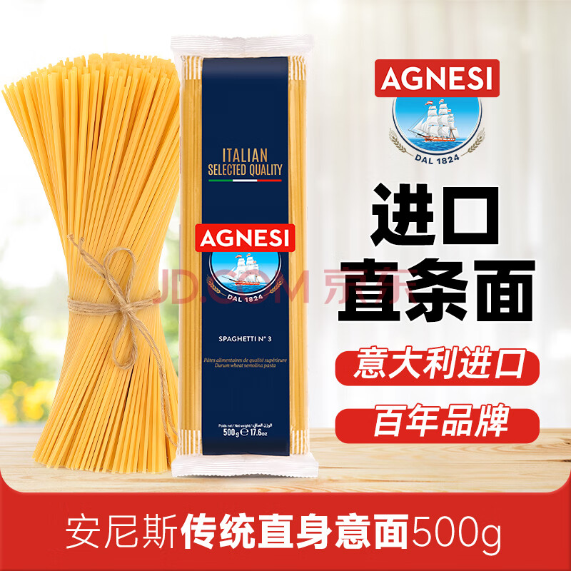 > 安尼斯直条形传统意面500g意大利原装进口低脂高蛋白儿童意面方便速食