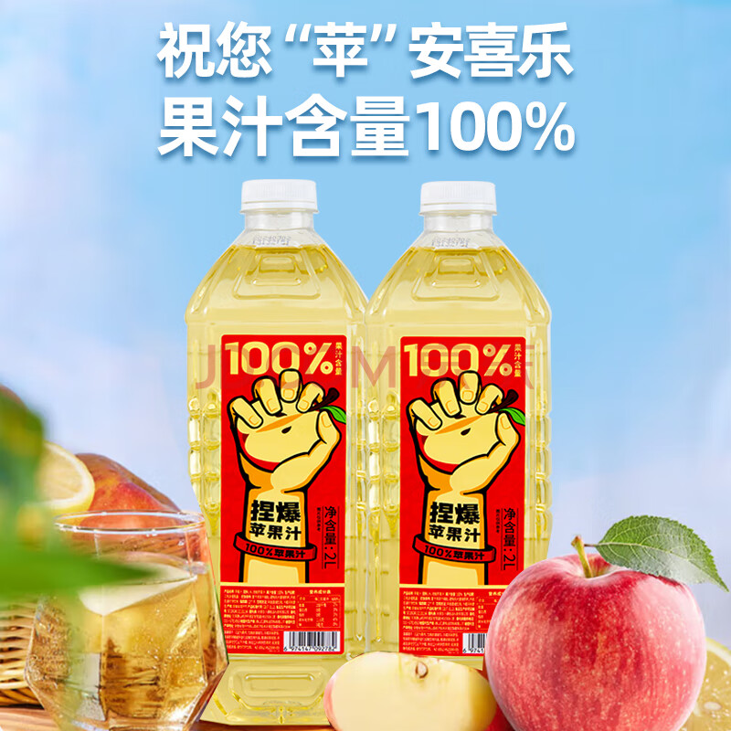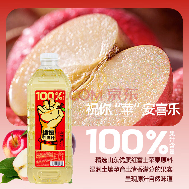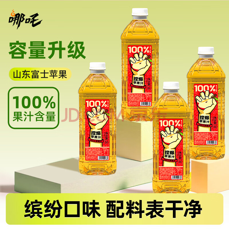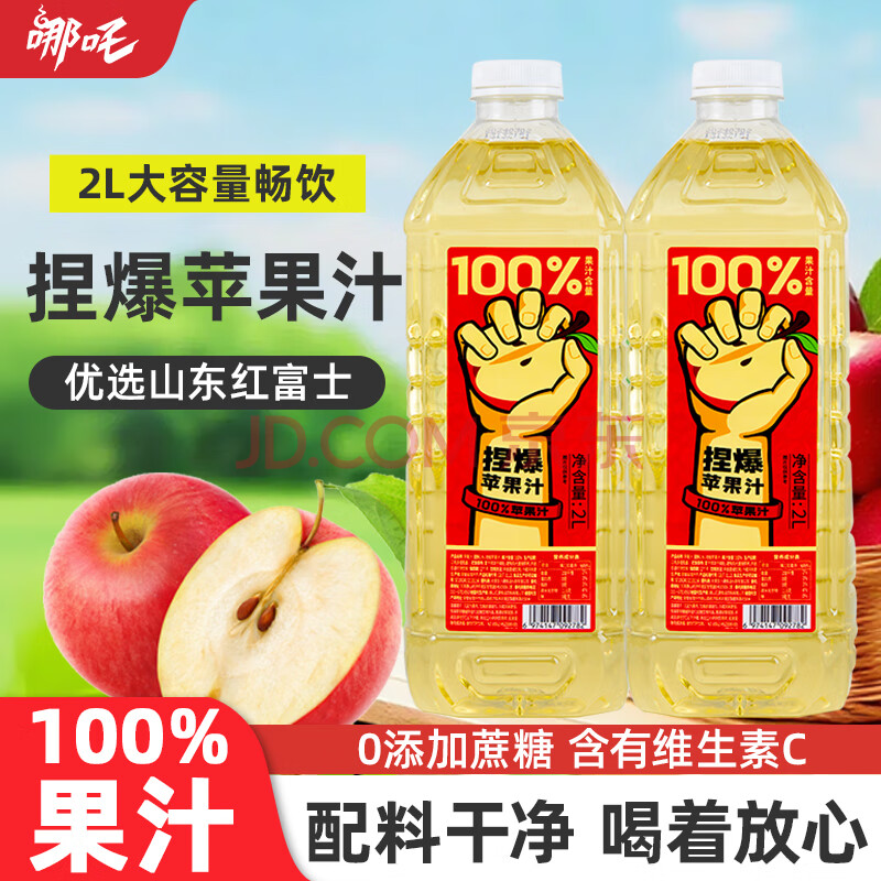 商品名称:哪吒捏爆100%苹果汁2L零添加纯果汁早餐聚餐火锅健康饮料品含vc大桶