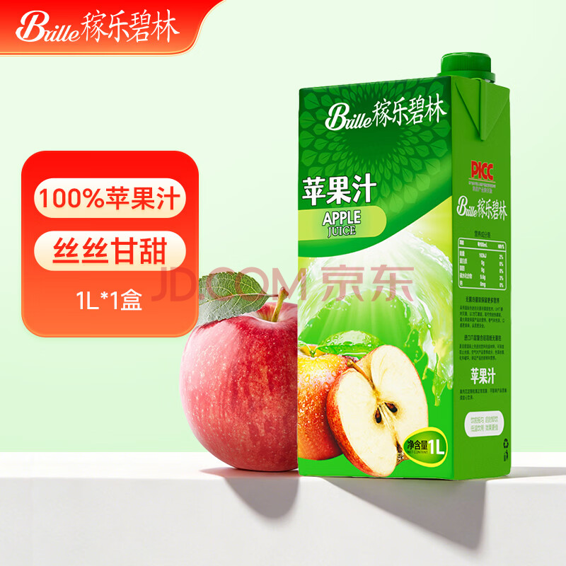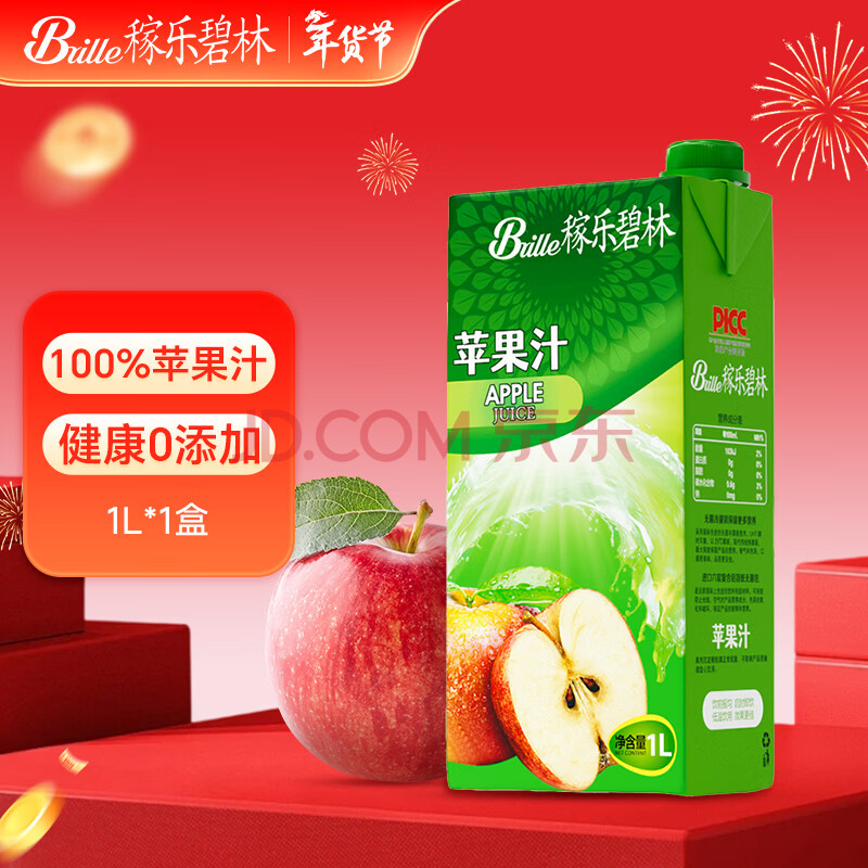 商品名称:稼乐碧林果汁 苹果汁1L健康低脂浓缩果汁饮料大瓶家庭分享年货春节过年礼