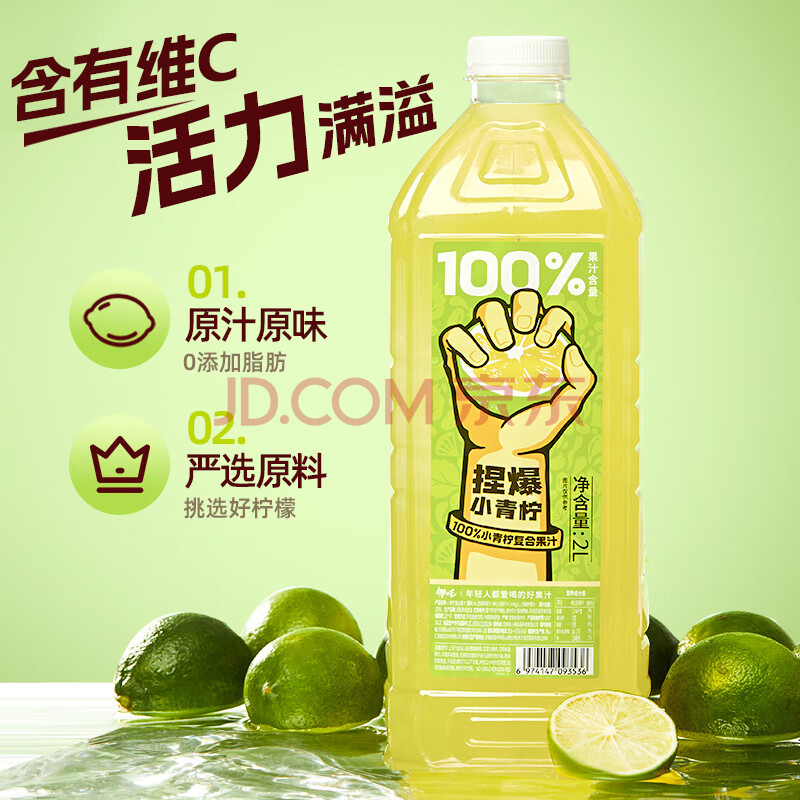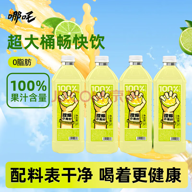 哪吒捏爆100%青柠汁2L聚会火锅饮料0添加糖0脂维C纯果汁饮品实惠大桶