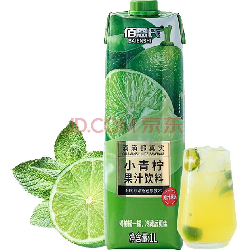 商品名称:佰恩氏(BAIENSHI)小青柠汁新鲜柠檬饮料非浓缩饮品【0添加剂】0脂1L*1瓶 含NFC果汁
