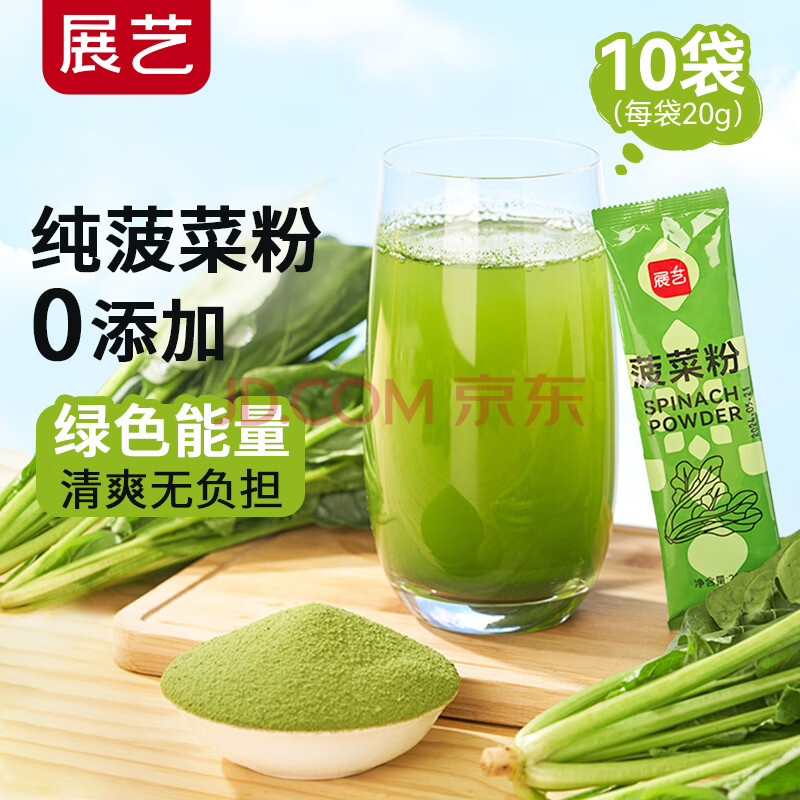 商品名称:展艺 0添加菠菜粉20g*10袋果蔬粉固体饮料膳食纤维早餐冲饮代餐