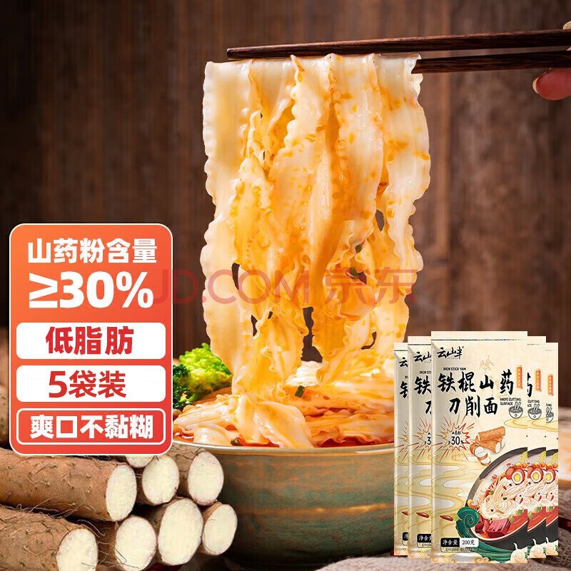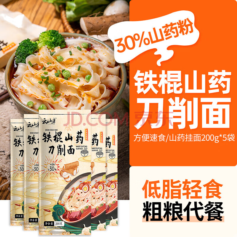 > 云山半铁棍山药刀削面200g*5袋 低脂肪山药挂面 面条宽面拌面 方便速食