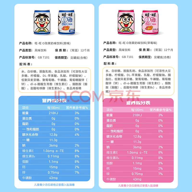 商品名称:旺旺O泡果奶味饮料 245ml*6罐 草莓味